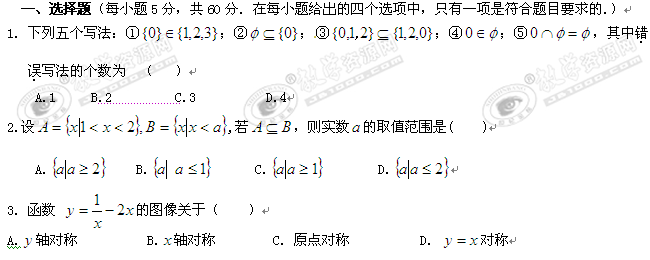 山东省沂南一中10-11学年高一上学期第一阶段质量检测试题(数学)