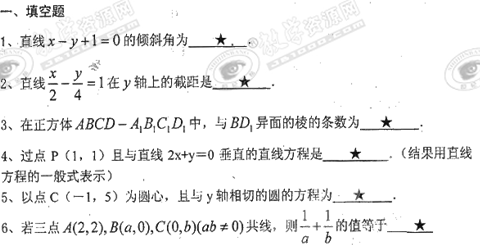 江苏省淮安市盱眙中学10-11学年高二上学期期中考试试题(数学)扫描版