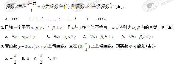 浙江省杭州第十四中学2011届高三10月月考(数学理)