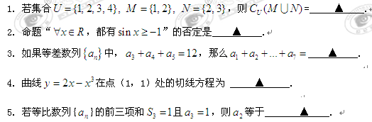 江苏省盐城中学2011届高三上学期期中考试试题(数学理)