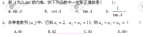 安徽省潜山野寨中学2011届高三上学期第三次月考(数学理)