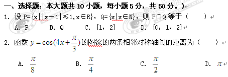 安徽省潜山野寨中学2011届高三上学期第三次月考(数学文)