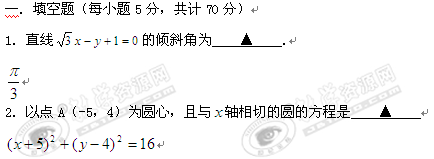 江苏省徐州市第三中学10-11学年高二上学期期中考试(数学)