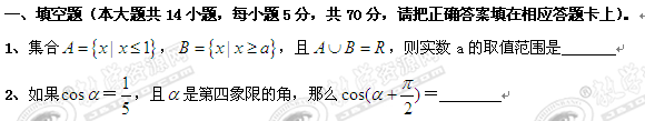 江苏省淮安市南陈集中学2011届高三上学期期中考试试题(数学)