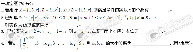 江苏省东海县高级中学2011届高三上学期练习十五(数学理)