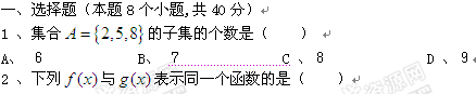 湖南省长沙铁路第一中学10-11学年高一上学期期中考试(数学)缺答案