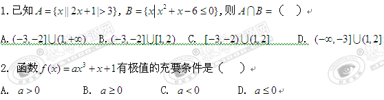 内蒙古包头一中2011届高三上学期期中考试(数学理)实验班缺答案