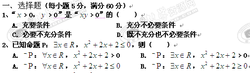 海南省嘉积中学10-11学年高二上学期教学质量监测(二)(数学文)