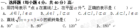 福建省永嘉县四校10-11学年高二上学期期中联考(数学)
