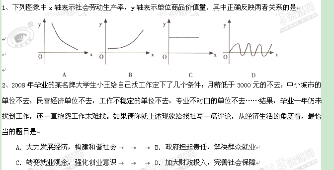 陕西省安康市汉阴中学10—11学年高一上学期期中考试(政治)无答案