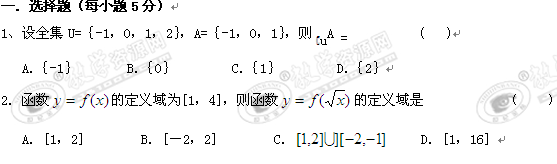 陕西省渭南市希望高中10-11学年高一上学期期中考试(数学)缺答案