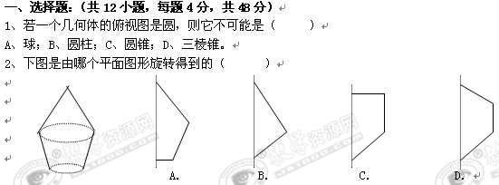 陕西省西安市电建中学10-11学年高一上学期第二次月考(数学)(立体几何部分)无答案