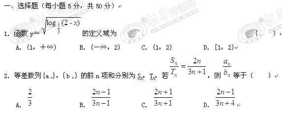 湖北省夷陵中学、钟祥一中2011届高三上学期第二次联考(数学理)