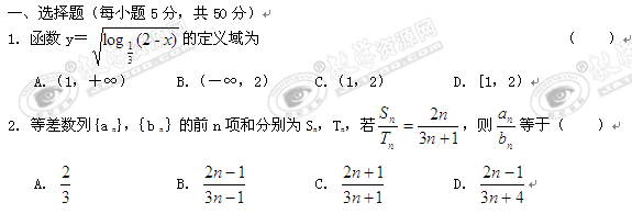 湖北省夷陵中学、钟祥一中2011届高三上学期第二次联考(数学文)