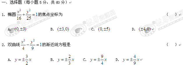 甘肃省武威五中10-11学年高二11月月考(数学)