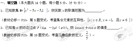 江苏省黄桥中学10-11学年高一上学期期中考试(数学)