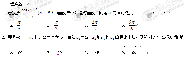 四川省成都市新都一中2011届高三上学期一诊适应性考试(数学理)