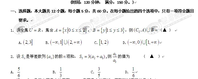 河北省唐山一中2011届高三上学期12月调研考试(数学理)