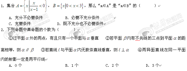 江西省吉安一中10-11学年高二上学期第三次段考(数学文)