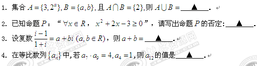 江苏省镇江市2011届高三上学期统考试卷(数学)(缺附加题题干)