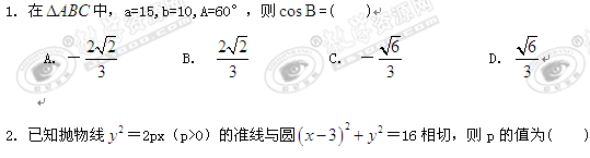广东省中山一中10-11学年高二上学期第二次段考(数学理)