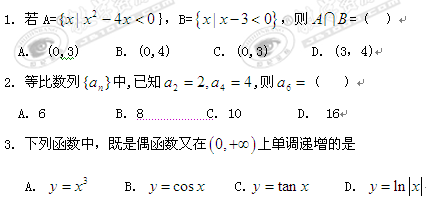 广东省2011届高三六校(惠州一中 珠海一中 东莞中学 中山纪念中学 深圳实验中学)12月联考(数学理)
