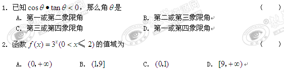 广东省高州市南塘中学2011届高三上学期第16周抽考(数学文)