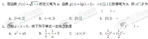 江西师大附中2011届高三上学期摸底考试(数学理)