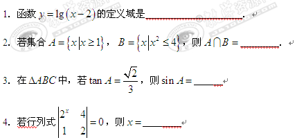 2011年上海市普通高等学校春季招生考试试卷(数学)