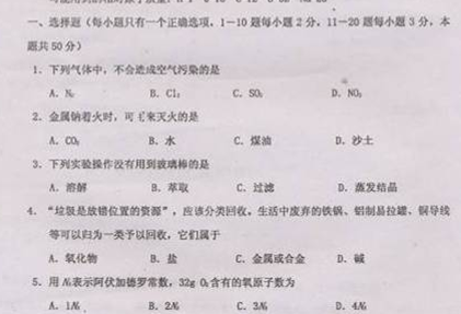 四川省雅安市10-11学年高一上学期期末考试(化学)扫描版