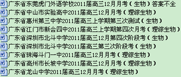 [打包下载]广东省各地2011届高三12月考试生物(9套)