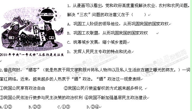 辽宁省本溪县高级中学2011届高三上学期10月月考 (政治)
