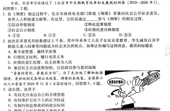 北京市海淀区2011届高三年级第一学期期末考试(政治)扫描版