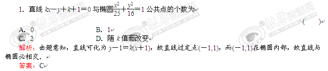 2011年高考数学二轮复习提前练:8-4直线与圆锥曲线的位置关系
