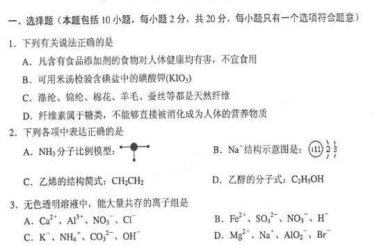河北省唐山市2011届高三上学期期末考试(化学)(扫描版)