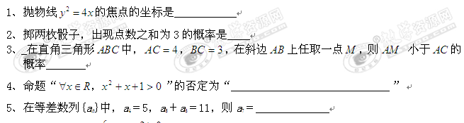 江苏省东台中学10—11学年高二上学期期末考试(数学)