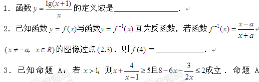 上海市黄浦区2011届高三上学期期终基础学业测评(数学)