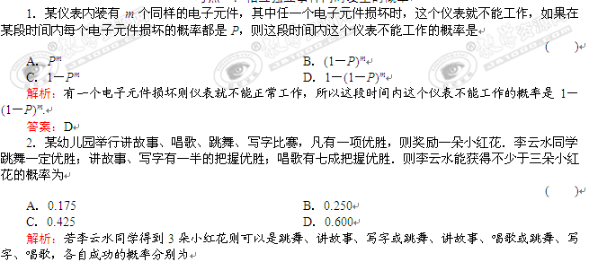 2011年高考数学二轮复习提前练:11-3相互独立事件同时发生的概率