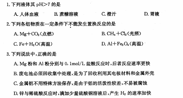 四川省成都市10-11学年高二上学期期末调研测试(化学)扫描版