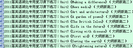 打包下载:2011届英语湖北专用复习课下练习:Unit1-10汇总(大纲版高二)10套