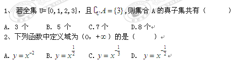 四川省内江市10—11学年高一上学期期末检测(数学)缺答案