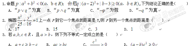 宁夏银川一中10-11学年高二上学期期末考试(数学文)