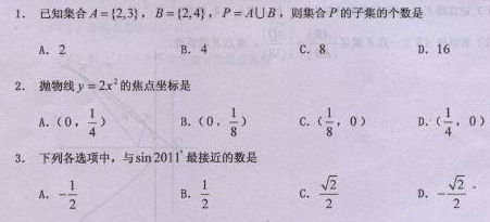 重庆市大部分区县2011届高三上学期期末联考试题(数学理)扫描版