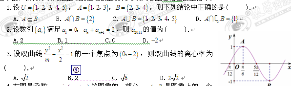 安徽省巢湖市2011届高三上学期期末教学质量检测试题(数学文)