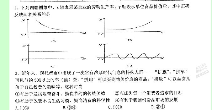 天津市河西区2011届高三上学期期末考试试题(政治)扫描版