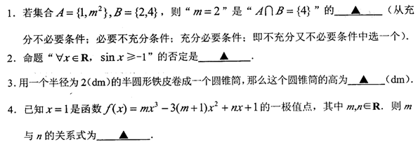 江苏省南通市10-11学年高二上学期期末考试(数学)扫描版