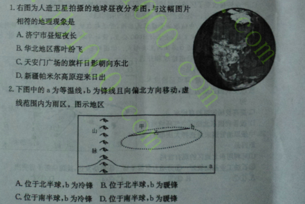 山东省济宁市2011届高三上学期期末考试(地理)扫描版
