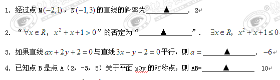 江苏扬州市第一中学10-11学年高二上学期期末考试试题(数学)