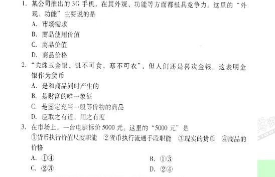 山西省10-11学年普通高中新课程模块结业考试(政治)无答案(必修1 扫描版)