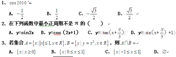 河北省冀州中学10-11学年高一上学期期末考试(数学理B)
